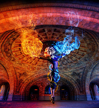 Creating a composition from stock imagery. Focus: Layer organization, paint techniques, blending modes, color manipulation, and photo compositing.
