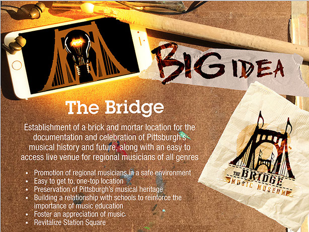 The Bridge - Brand Brief - branding exercise. Research, logo development, and implementation of a non-profit, music museum and live music venue in Station Square, Pittsburgh. 2015.