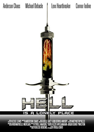 Hell is a Lonely Place - Creation of three movie posters in three separate movie genres with a complete plot synopsis and explanation of imagery. This poster is a documentary investigating drug usage in the music industry. 2015.
