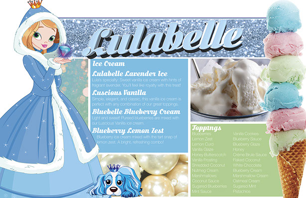 Snow Queen Order Menu- Branding exercise: creation of logos, narratives, unique promotion items, static and dynamic mood boards, merchandise, and radio spot. Created in Illustrator, InDesign, Photoshop, Animate (Flash), and Audition. 2015-2016.