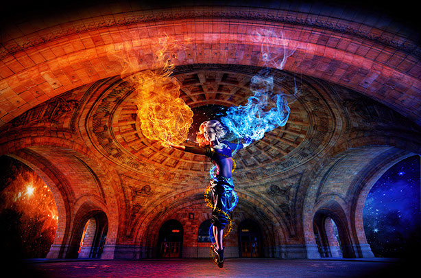 Creating a composition from stock imagery. Focus: Layer organization, paint techniques, blending modes, color manipulation, and photo compositing.